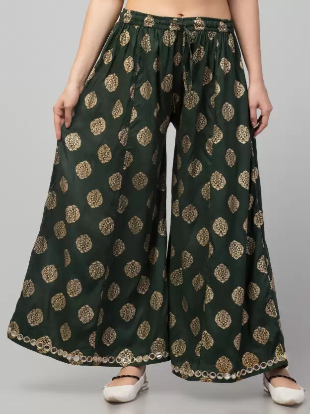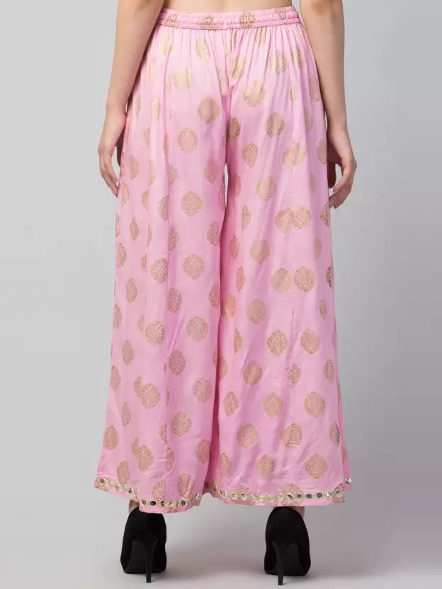 Women Flared Pink Viscose Rayon Trousers