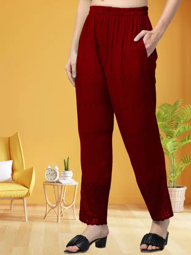 Women Relaxed Maroon Viscose Rayon Trousers